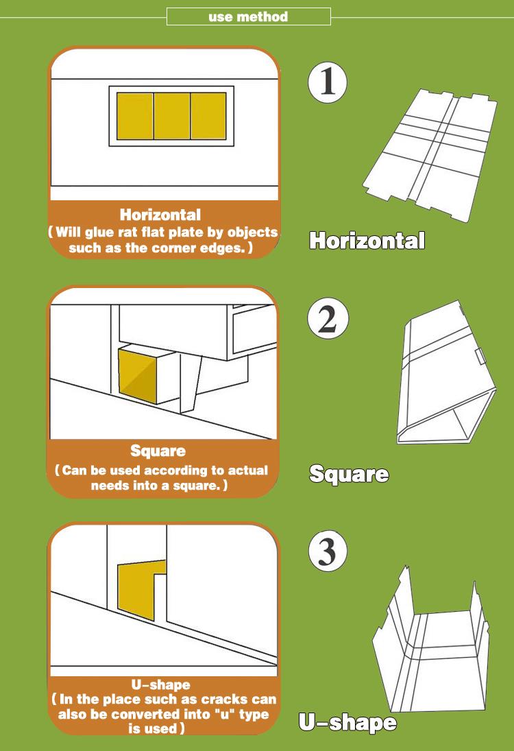 Glue traps, like TOPONE Mouse Glue Trap Bait and TOPONE Rat Glue Board Traps are easy to use. Simply place the traps where the floor meets the wall in areas where rodents travel (as indicated by rodent signs like hair, droppings, or damage). Glue traps have a low profile so the rodent will not become suspicious when it happens upon the trap-it will continue to walk across it as if it were an extension of the floor. As soon as the rodent comes in contact with the glue, it becomes entangled and unable to free itself. The rodent will eventually suffocate to death.